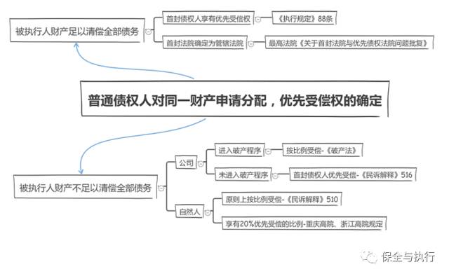 执行程序中,关于首封债权人的普通债权较之其他生效法律文书确定的具有金钱给付内容的普通债权是否具有优先受偿权的问题,一直不甚明了,且实务操作中各地法院的裁判观点亦不完全统一。2017年5月15日我们在公众号“保全与执行”上首发文章《多债权人对同一财产申请参与分配的,同一顺位债权如何清偿》,基于最高法院案例((2016)最高法执监205号)的裁判观点,判断“被执行企业在其财产不足以清偿全部债务时,对普通债权应按比例清偿”。
