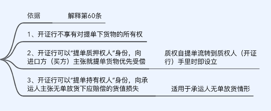 49 在跟单信用证下,开证申请人与开证行之间产生欠款纠纷时,合法持有提单的开证行对提单下的货物享有何种权利?
