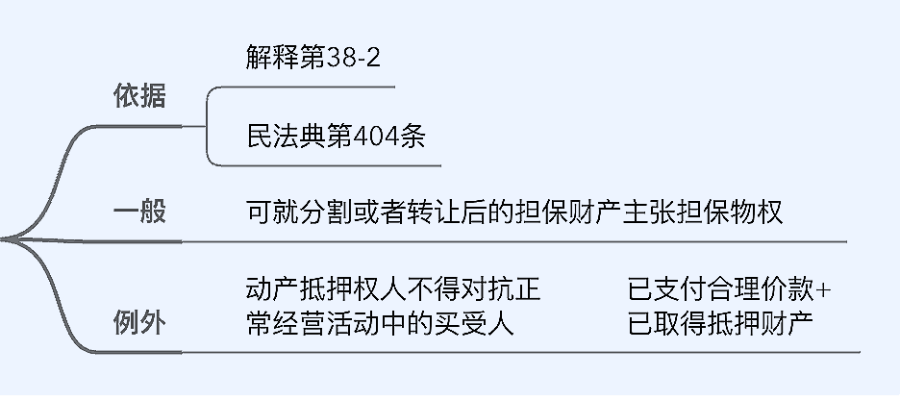 33 在担保财产被分割或部分转让时,担保物权人能否就分割后或转让后的全部财产行使担保物权?